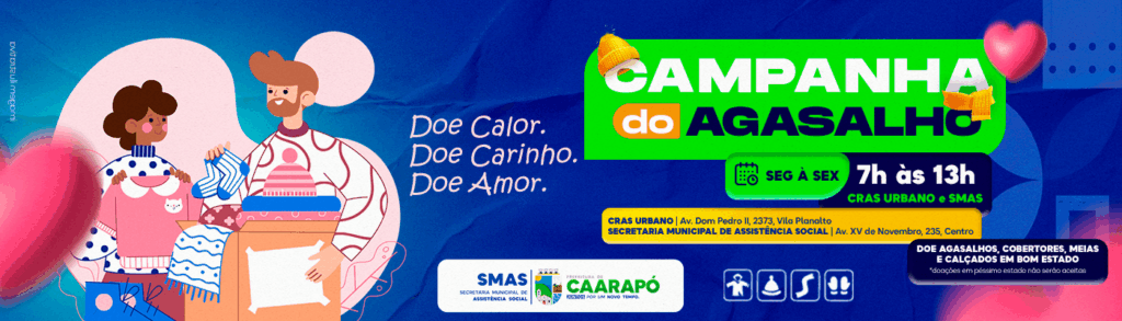 Com a chegada do inverno, cresce a preocupação com as pessoas em situação de vulnerabilidade social, que enfrentam o frio sem os recursos mínimos para se aquecer. Pensando nisso, a Secretaria Municipal de Assistência Social lança oficialmente a Campanha do Agasalho 2025, com o tema “Aqueça um Coração Neste Inverno”.