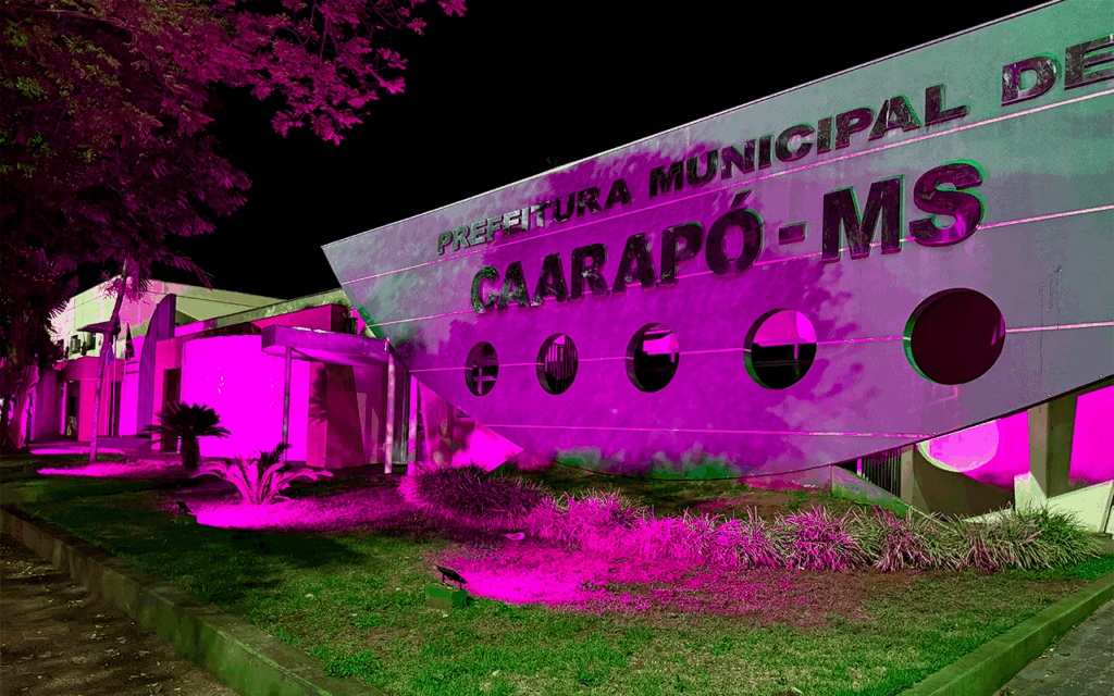 Durante todo o mês de outubro, as fachadas da Prefeitura Municipal de Caarapó e das secretarias municipais estarão iluminadas na cor rosa, em adesão à campanha Outubro Rosa, movimento internacional de conscientização sobre a prevenção e o diagnóstico precoce do câncer de mama.